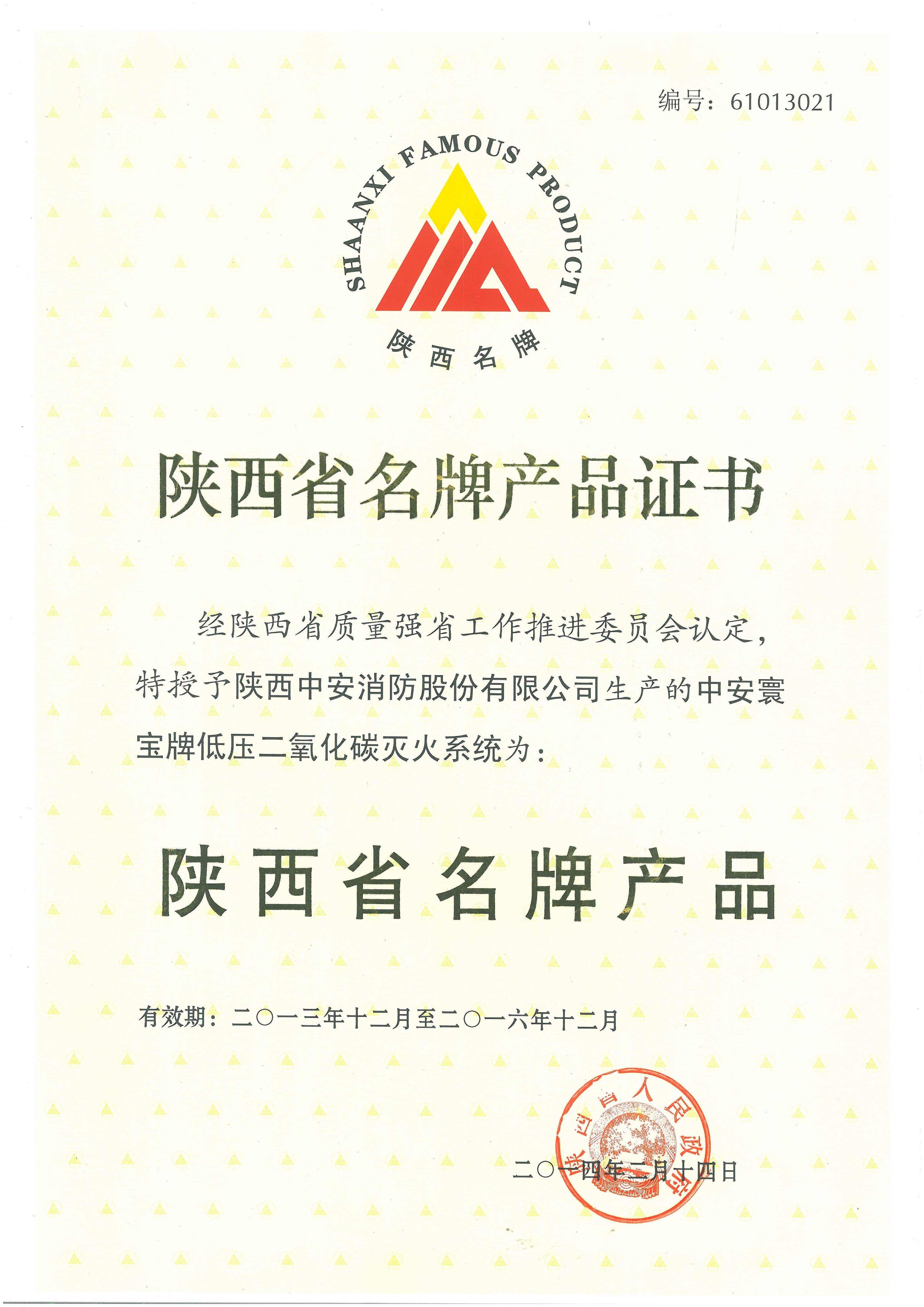 公司“中安寰寶”商標復審通過認定為陜西省名牌產(chǎn)品